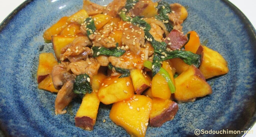 柿とサツマイモの甘辛炒め「とろり、ホクホクのハーモニー」