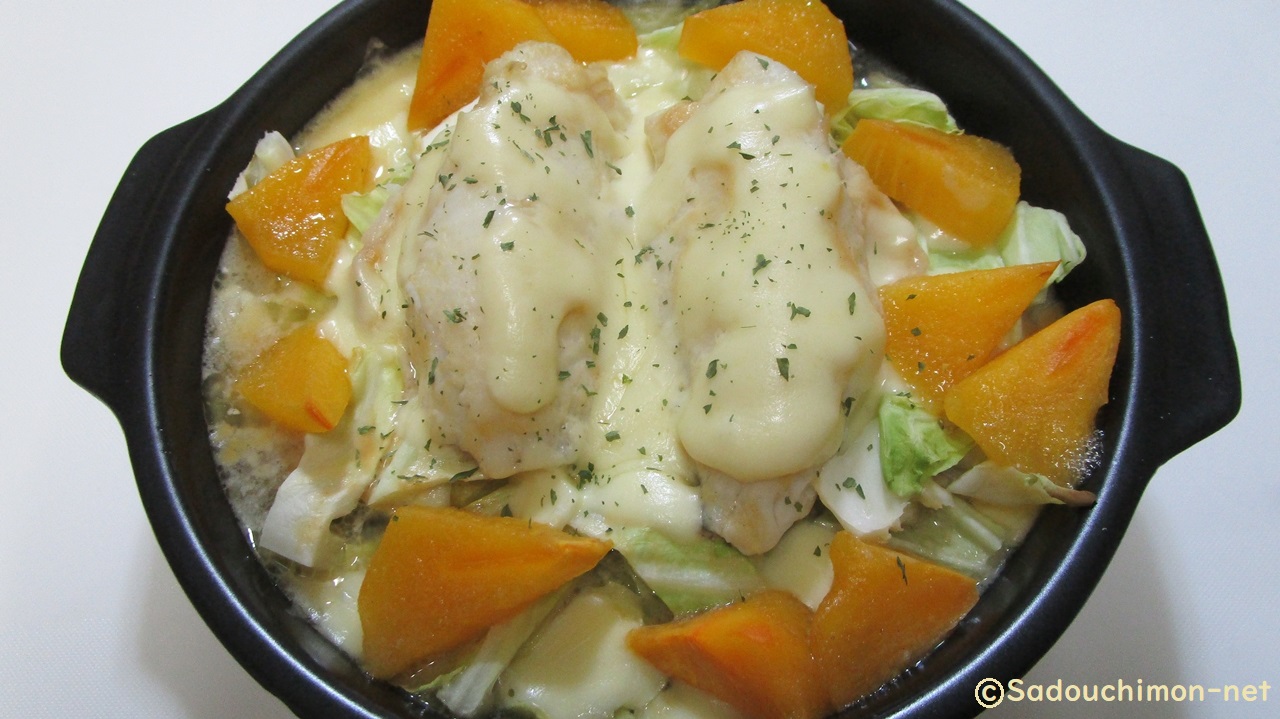 白身がふんわり味もしっかり染みている、キャベツはちょっと歯ごたえが残るシャキシャキ感、とろっとした柿がアクセントになり美味しいです。チーズと味噌の分量は、お好みで調整してください。レシピ通りだとチーズの味が強く感じます。チーズを半分にして、味噌を増やすとしょっぱくなるので、マヨネーズの量で味を調整してください。