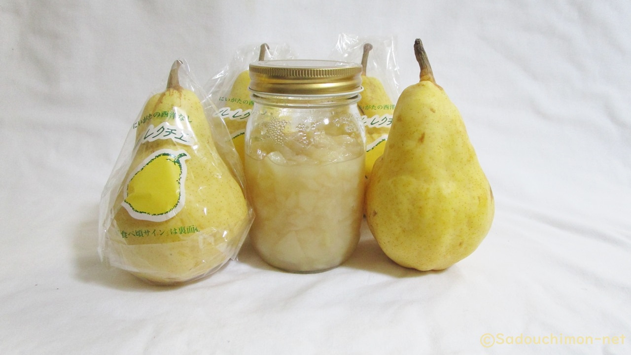 ル・レクチェは洋ナシの中でも甘さがはっきりとしているので、砂糖を入れなくても甘いジャムにはなります。今回は砂糖を入れることで水分が出るので、煮やすくなるしより甘味が強くなります。甘さは市販のアップルパイの調理されたリンゴくらいの甘さです。